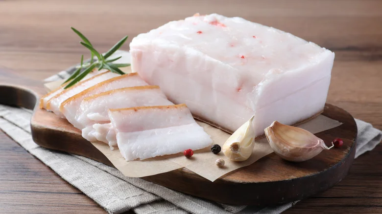 Pork fat trimmed cleanly for rendering lard or specialty cooking use.