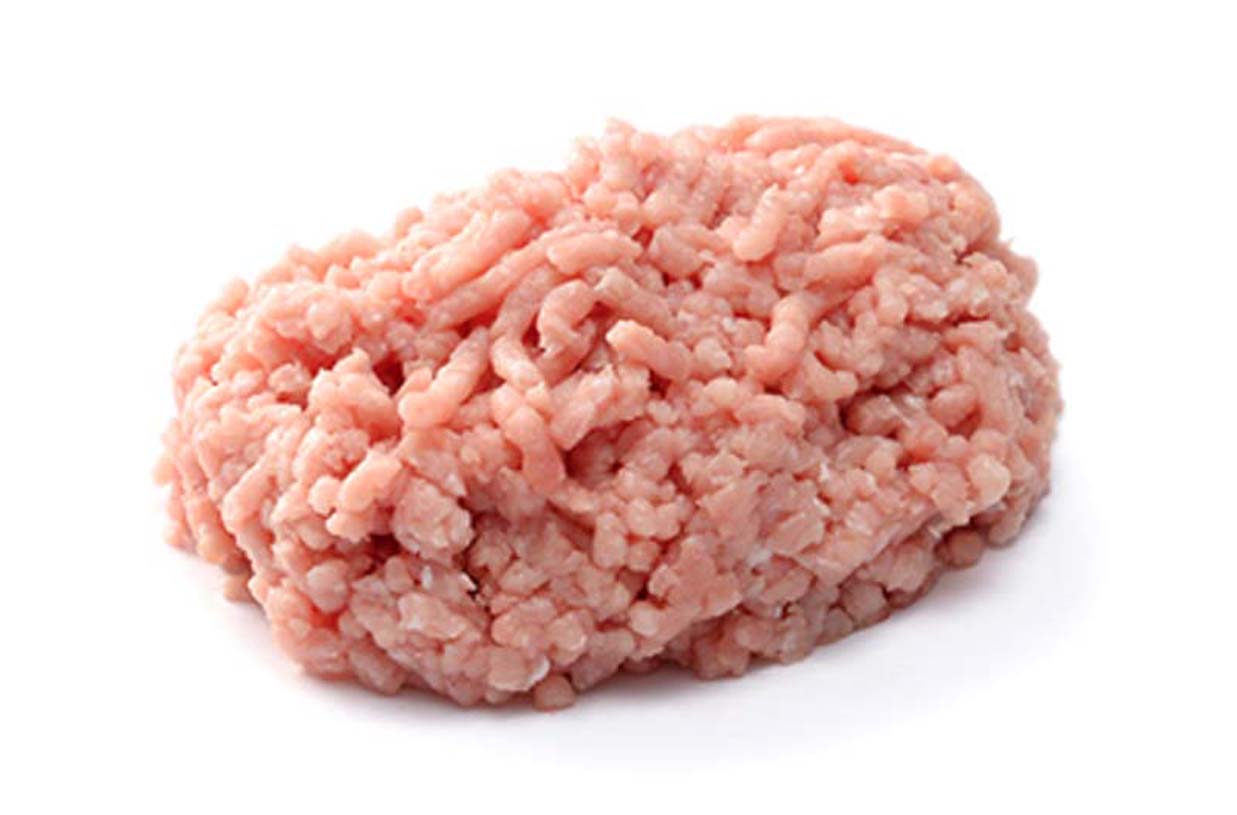 Freshly minced pork prepared from clean cuts, suitable for bulk cooking and processing.